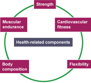 Physical fitness has two major components. These include health related components, i.e,muscular strength, muscular endurance, cardiovascular endurance, flexibility and body fat composition. As well as skill related components such as ; agility, balance, coordination, power, reaction time and speed.